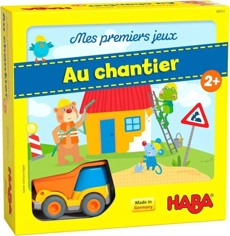 Le chef de chantier Bruno a besoin d’aide pour construire une maison. Les joueurs doivent trouver les plaquettes-cônes de chantier correspondantes et les transporter avec le camion-benne vers le chantier. Petit à petit apparaissent le sol, les murs, le toit et le jardin. Lorsque la maison est achevée, tous les joueurs en connaissent un peu plus sur les étapes de construction et ils gagnent tous ensemble ! Ce jeu de mémoire et coopératif Au Chantier Haba favorise la reconnaissance et le classement des couleurs dès 2 ans.