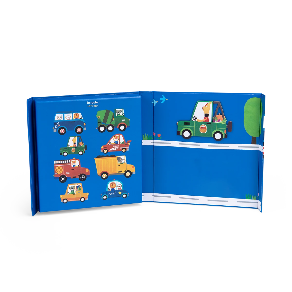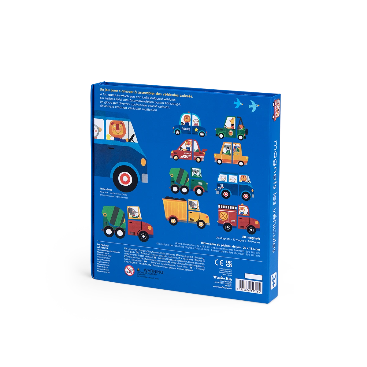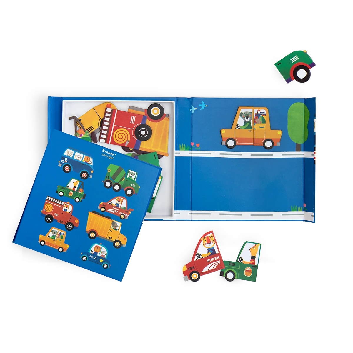 | Les plus du produit | Format facile à ranger et transporter, Peut aussi se jouer sur un tableau blanc ou frigo, Premières découvertes des engins |
