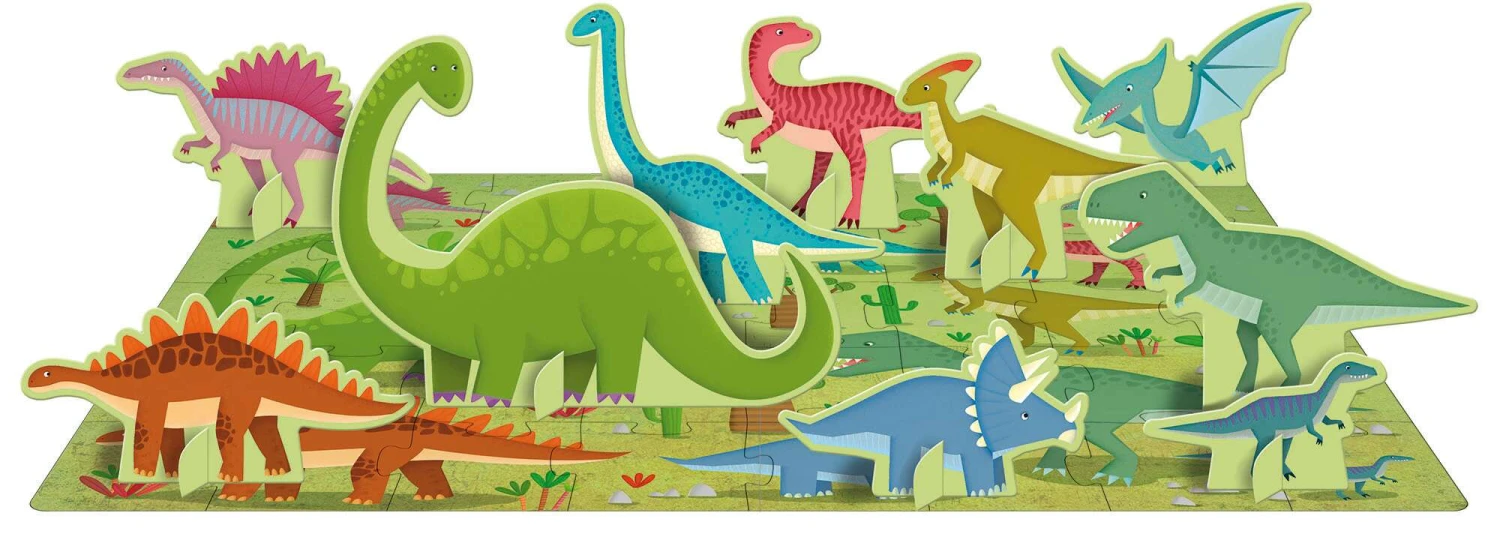 à placer sur le puzzle, pour apprendre à reconnaitre et à associer les éléments et les mots. Il y a des millions d’années, la Terre était peuplée d’énormes reptiles, certains redoutables et d’autres plus apprivoisés : les dinosaures. Apprends à les connaître tous et à reconnaitre et associer les éléments et les mots !