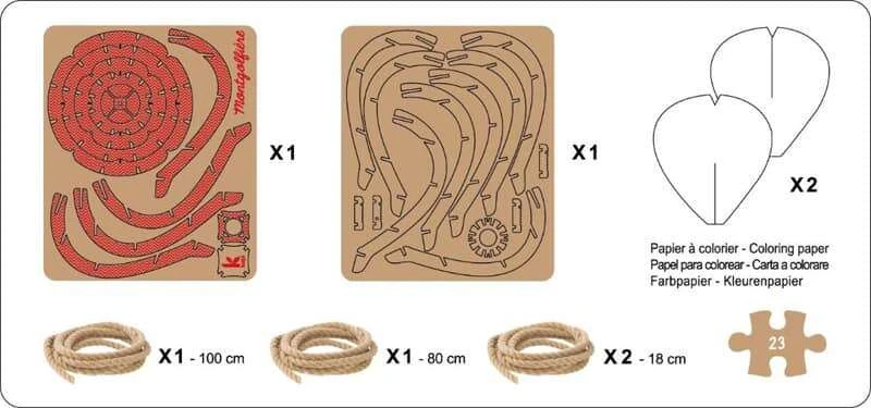| Contenu du produit | Notice de montage – Panneaux de MDF – corde naturelle |