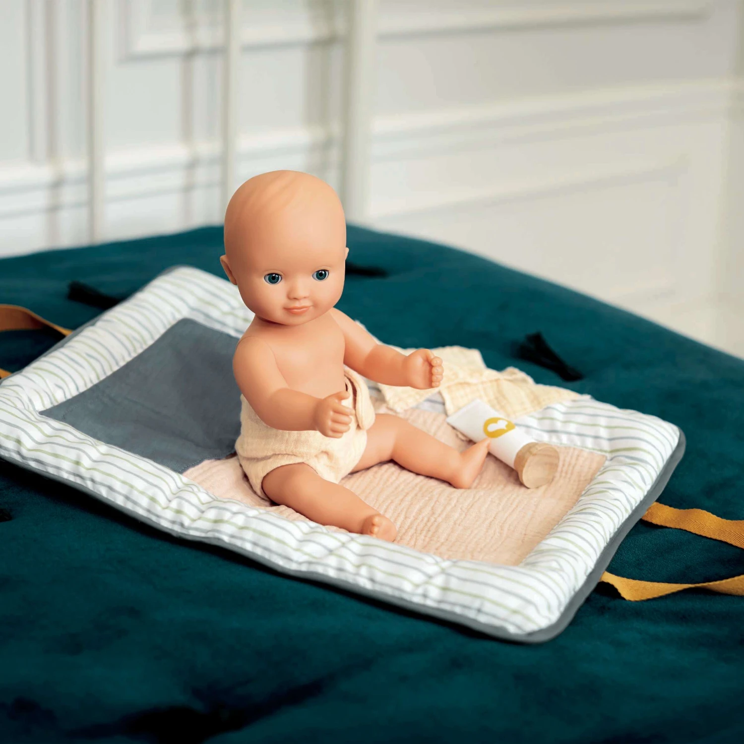 | Contenu du produit | Adapté aux poupons de 30 à 36 cm. Sac 2 en 1 : plié, il se transporte partout, ouvert, il devient sac à langer. Une poche à l'intérieur pour ranger tous les accessoires. |